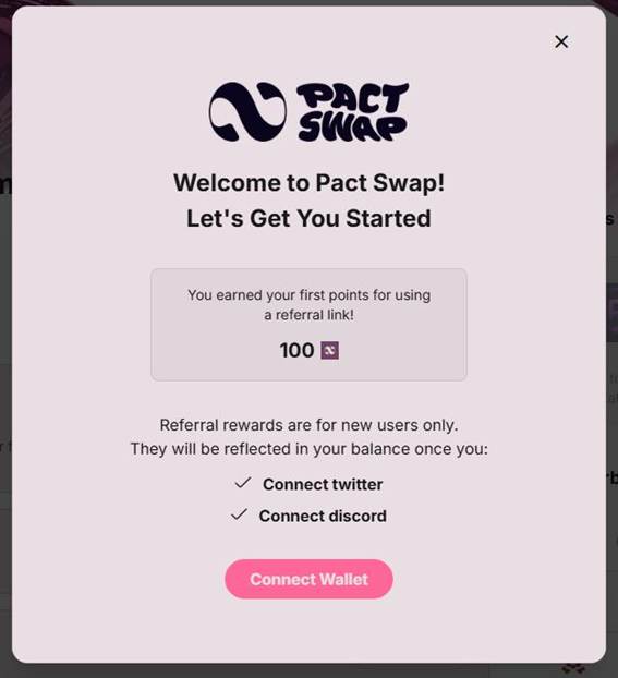 PactSwapに関する内容をXに投稿すると1回25pt。