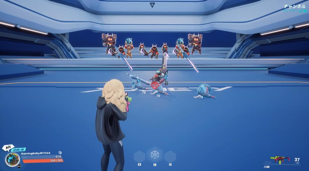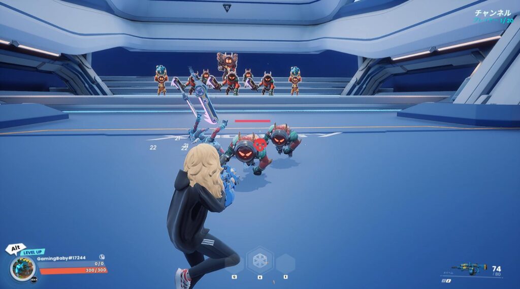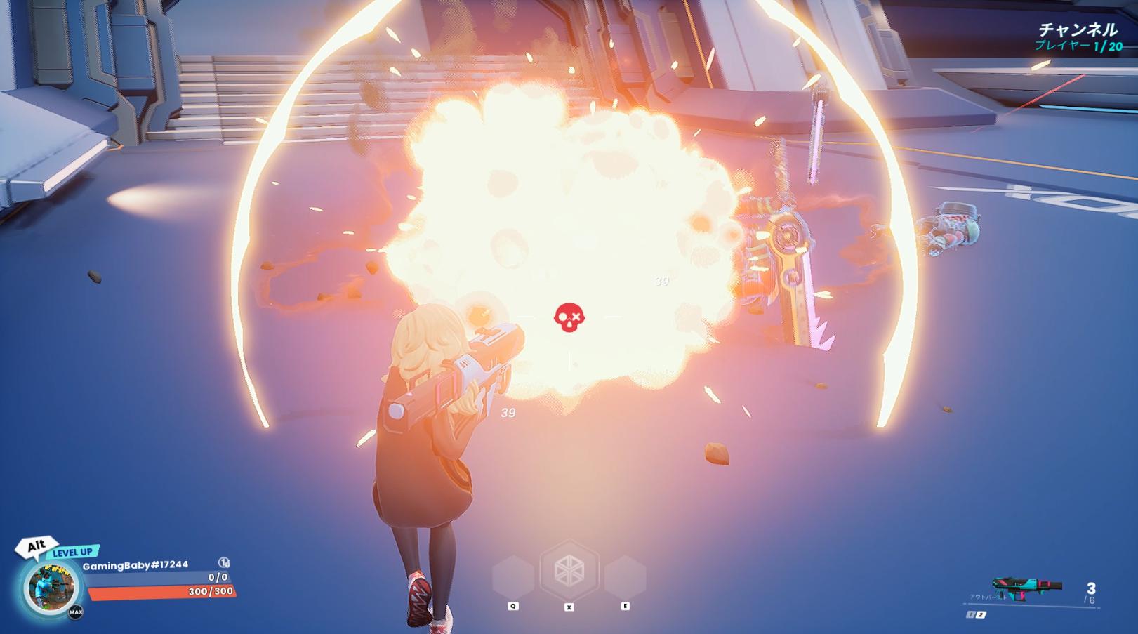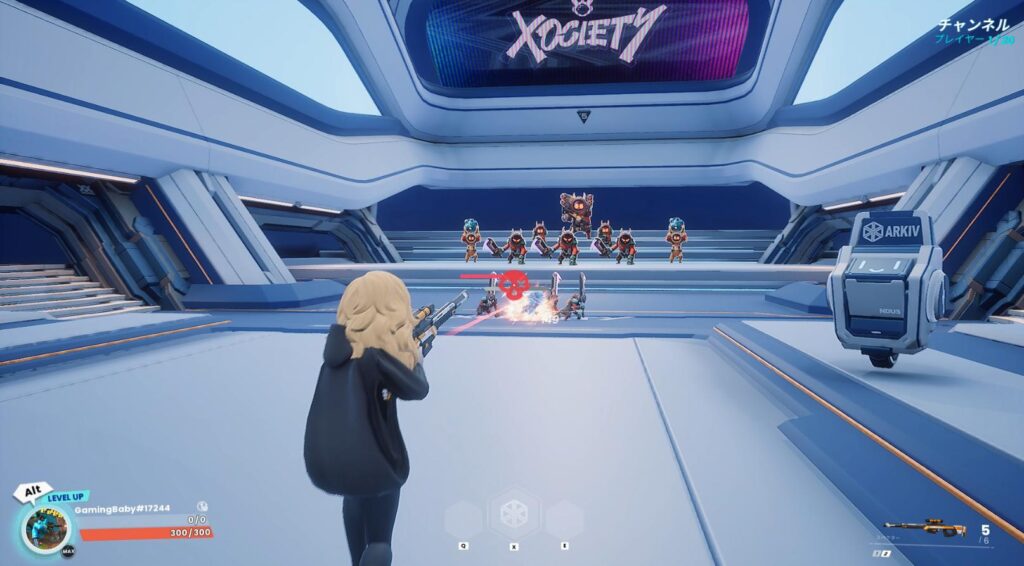 左クリック押しっぱで連射できるので、XOCIETYなどのTPS・FPSに慣れていない人でも簡単に扱えます。エイムを正確に合わせるというより、感覚で連射する。それがサブマってやつです。