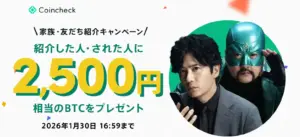・招待コード「ks0kuiim」で1,500円分のビットコインがもらえる