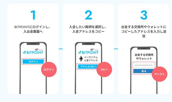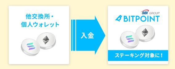 他の取引所や個人のウォレットにある仮想通貨をステーキングしたい場合は、BITPOINTへ入金しましょう。